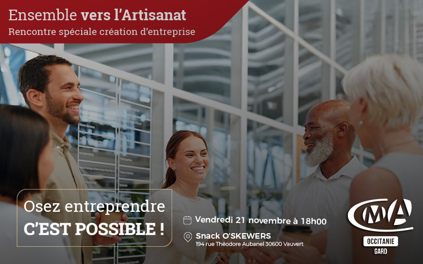 La Chambre de Métiers et de l’Artisanat du Gard (CMA) organise une soirée exceptionnelle à Vauvert, au cœur du quartier des Costières, pour sensibiliser les habitants aux opportunités de l’entrepreneuriat artisanal. Cet événement, ouvert à tous, mettra en avant des parcours inspirants d’artisans locaux et présentera les démarches concrètes pour créer son entreprise dans l’artisanat.